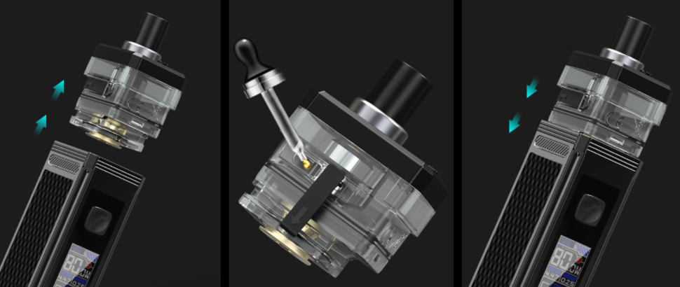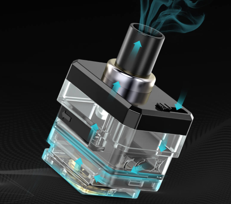 По сложившейся традиции в Smoant Pasito 2 kit используется картридж, который удерживается в батарейном блоке при помощи магнитов. Немаловажная особенность в том, что объем картриджа составляет 6 мл, а это немало. Дрип-тип 510-й, поэтому не составит труда его заменить.